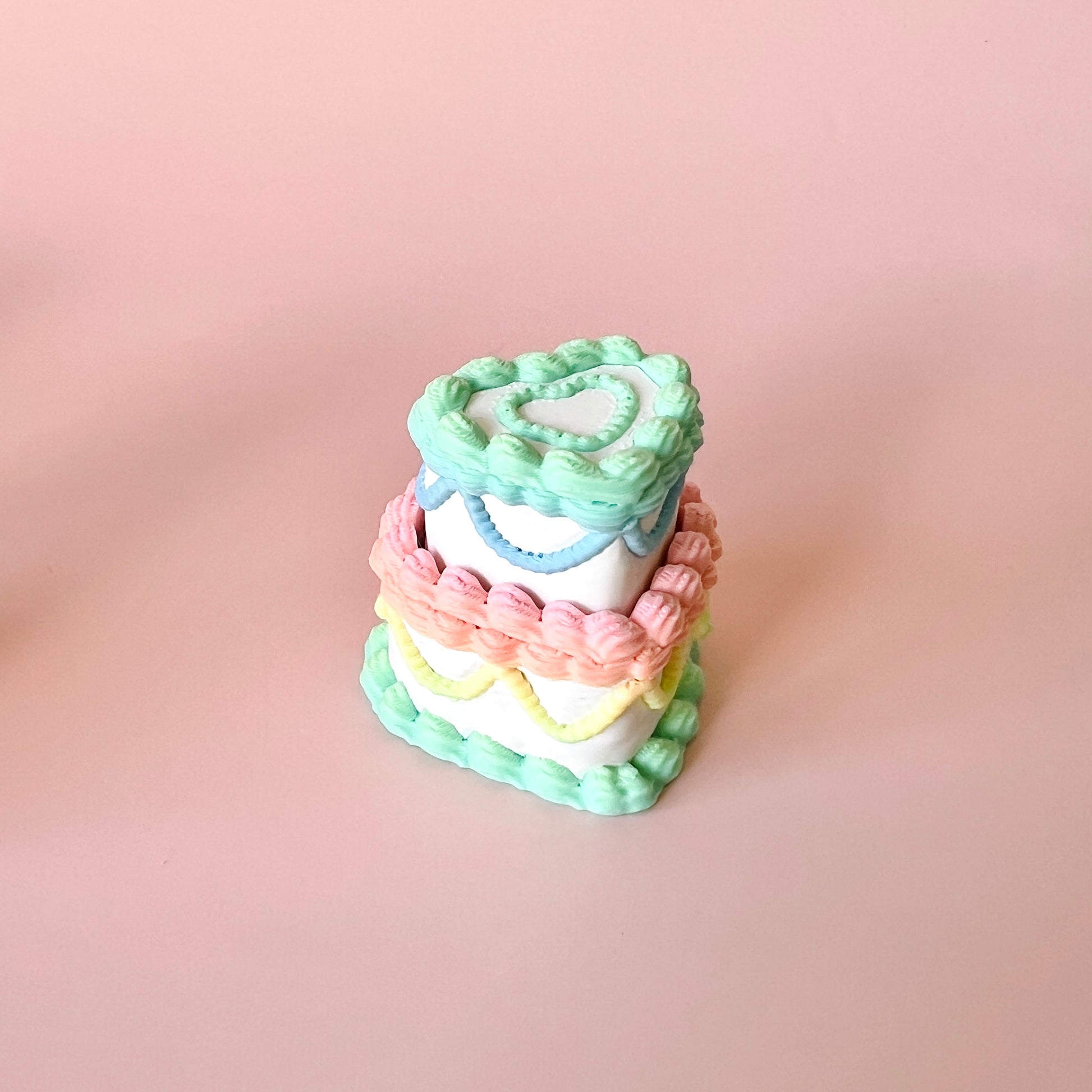 For designs featuring pastel rainbow filament, please note that the rainbow is created using a gradient filament. This means the colour placement and flow will naturally vary with each print, making every cake unique. No two will look the same. 🌈