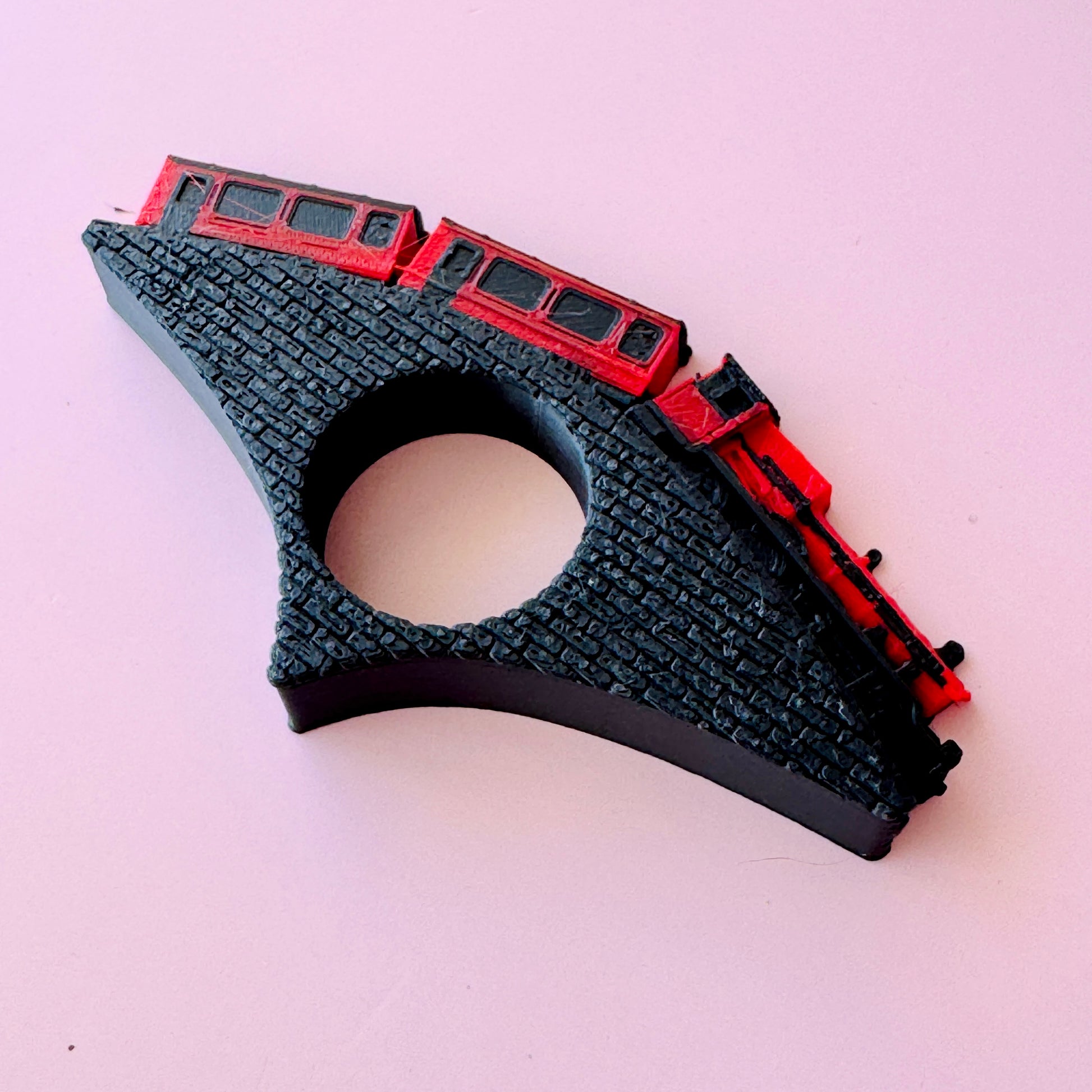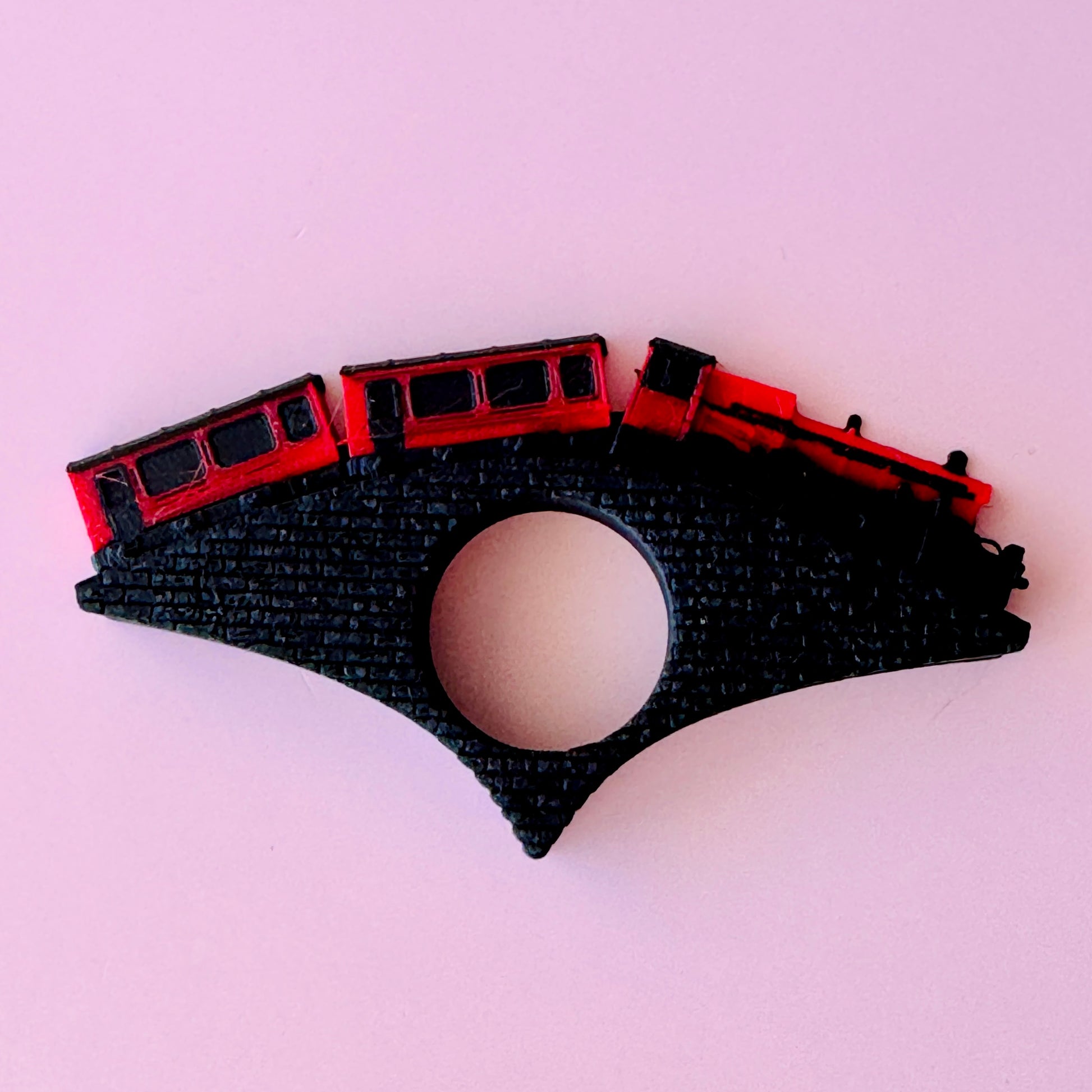 Keep your book pages perfectly open with this whimsical 3D printed train page holder! Inspired by the magical Hogwarts Express, this miniature red and dark grey train rests on a brick bridge, adding a touch of wizarding charm to your reading. Perfect for one-handed reading, taking notes, or cooking from your favourite recipe books.