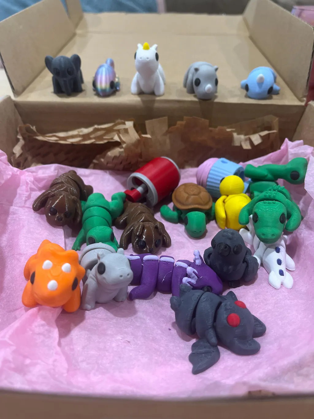 Unbox endless fun with our 3D-Printed Articulated Fidget Toy Bundle! Each pack includes 20 micro-sized Pocket Pal fidget toys in a mix of animals, food, and seasonal designs—perfect for sensory play or collecting. Made from non-toxic, eco-friendly PLA plastic, these flexible toys are both safe and sustainable.