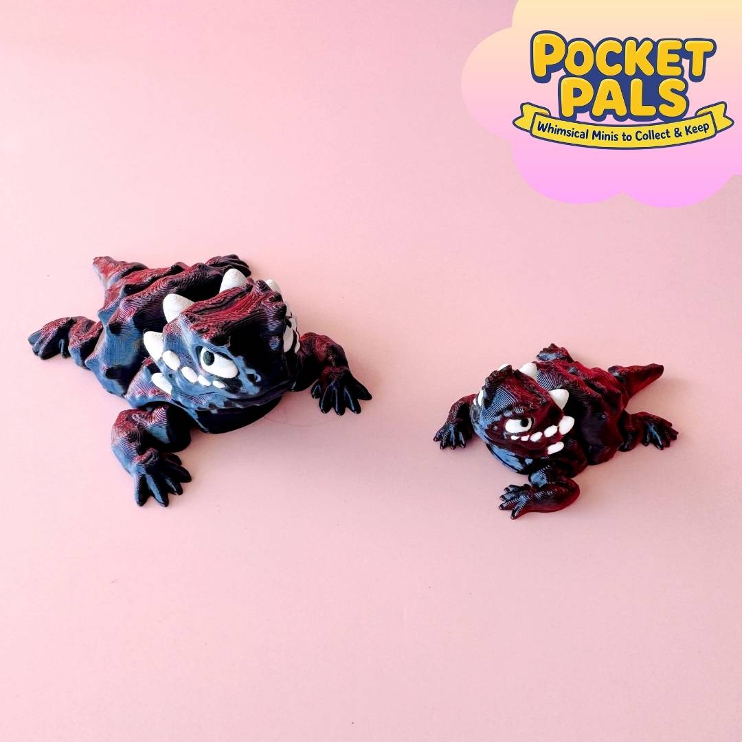 Bring a dash of desert charm to your collection with our Horned Lizard Pocket Pal. Available in Mini and Classic sizes, this tiny lizard features detailed spiky horns and a fun design that makes it a standout in any collection.